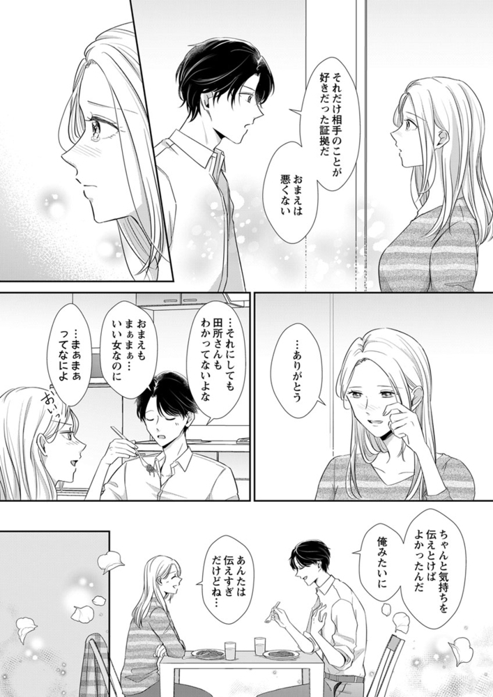 「ちょっと付き合ってみないか、俺たち」――営業の桜庭太一と本田香奈子は、同期でライバル。仕事だけでなく、お互いの自慢の恋人とのラブラブ度合いまでも張り合う日々。ところがある日、二人は同時期に恋人に別れを告げられ、しかも、桜庭の元カノ・西脇と本田の元カレ・田所がまさかの結婚!? 結婚式で西脇と田所がまだ入籍前と聞いた二人は、≪恋人を取り戻す≫ため、そして≪フラれた理由を知る≫ため、疑似恋人になることに――。お互いの欠点を知るためだけの、かりそめの関係だと思っていた本田。ところが、桜庭はしつこいほど丁寧すぎる本気の愛を見せつけてきて……!?