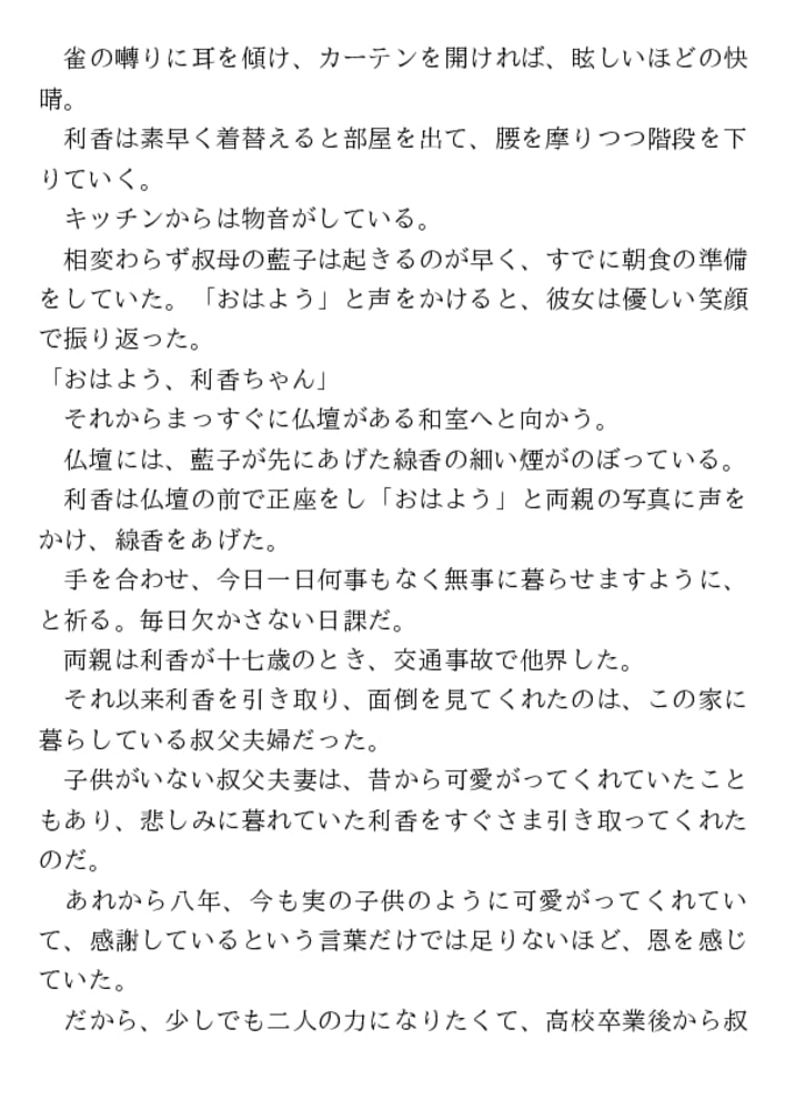 両親の死後、便利屋を営む叔父夫婦に引き取られた利香。