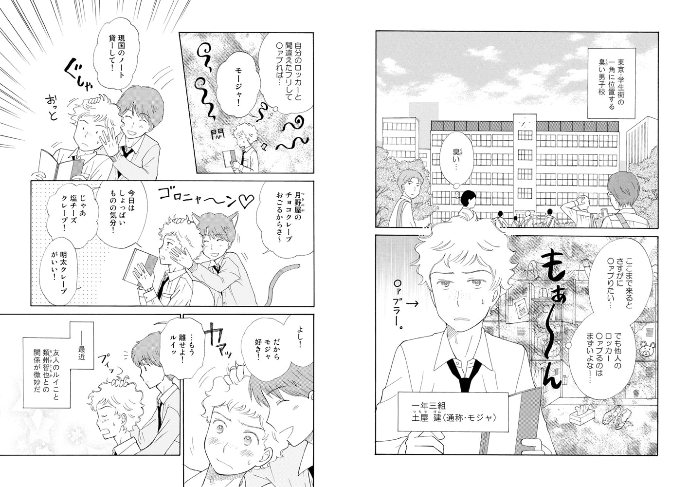 土屋建は天然パーマがコンプレックスなジミメン男子。愛称は「モジャ」。