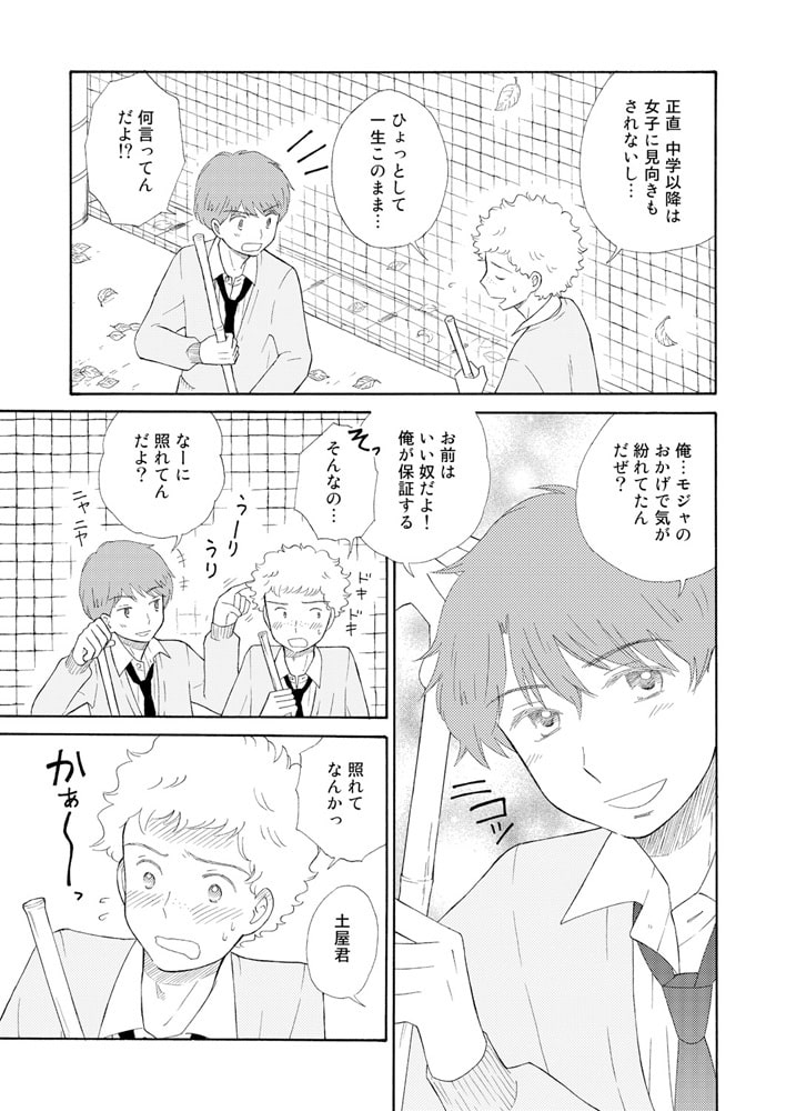 土屋建は天然パーマがコンプレックスなジミメン男子。愛称は「モジャ」。