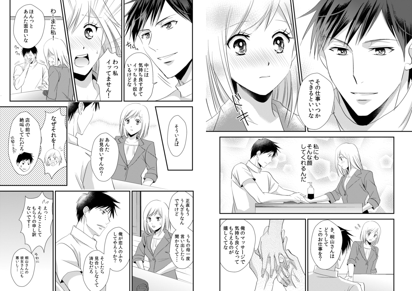 マッサージオイルの営業をしている千秋は男性の手が大好きな手フェチ。ある人気サロンに営業に行った際、理想の手を持つマッサージ師の桐山と出会う。