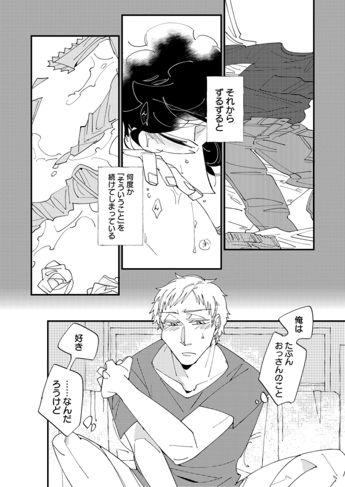 親ほどに年の離れた、それも同性である谷中に惹かれていることに戸惑いつつも、気持ちを自覚した滝田は、衝動を抑えきれず、ある日ついに谷中に想いをぶつける。