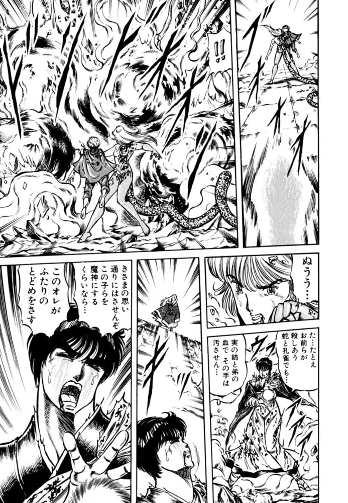 それぞれ、天蛇王・孔雀王の運命を背負うオルガとオカンの姉弟は、宿命に促されるままお互いを傷つけあう。人と神の狭間で苦しむ二人が選ぶのは、この世から消え去ること……。悲しい姉弟の死を見届けた孔雀は、怒りを爆発させる。