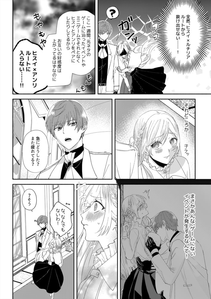 「待たない、誘ったのは君だろ」カラダ中を這う熱い舌先、濃密な愛撫で私を攻めるのは―…。熱中していた乙女ゲームの世界に、ある日突然転生してしまった真面目OL。よりにもよって転生したのは悪役令嬢・ルチリアで!?最推し王子のヒスイ様を前にして浮かれる反面、悪役令嬢(わたし)と結ばれたら彼に待っているのはバッドエンドだけ。そんなの絶対回避しないと!そう思い、悪役に徹すると決めたのに…。嫌われようと色仕掛けをしたら、なぜか抱きしめられて!?オスの顔で見つめられ、キスでとろけたナカと胸を同時に弄られたら声が出ちゃう…!この甘い熱がヒスイ様の破滅と隣合わせだと分かってるのに、私…このままSEXしちゃうの?