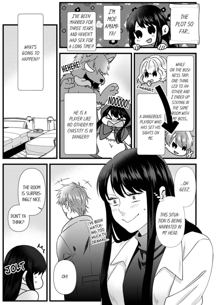 More than a boss, but not quite a lover.The current worry of Moe Amamiya, who works at a medium-sized lingerie company, is that her sex life with her husband is practically nonexistent. Whatever she does, whether it’s dropping subtle hints here and there or trying to seduce him outright, nothing resonates with him... But then, on the day she and her husband hit a new record in the number of days without sex, Moe gets called over by her boss and colleague, Shinozaki. The two of them share a “little secret” that's going on in a secluded fitting room area...“If you keep this up, I’m going to cheat on you.”