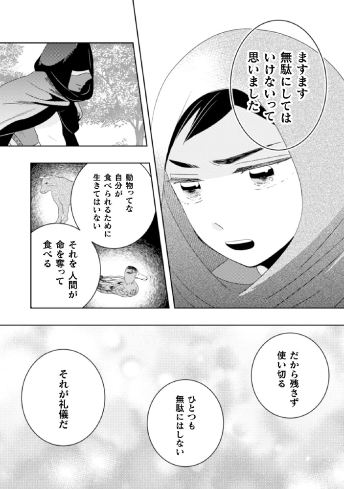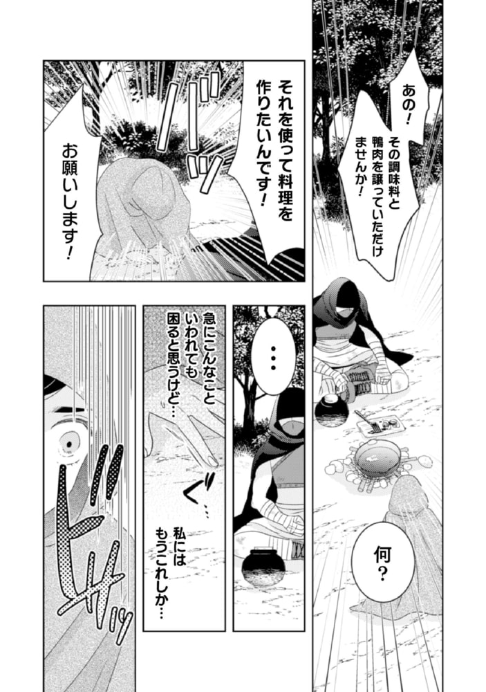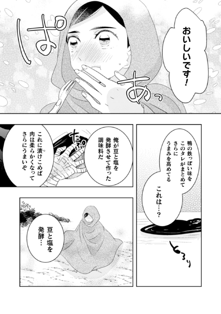 謎の人物にふるまわれた食事により、少しずつ活力が湧いてくる。