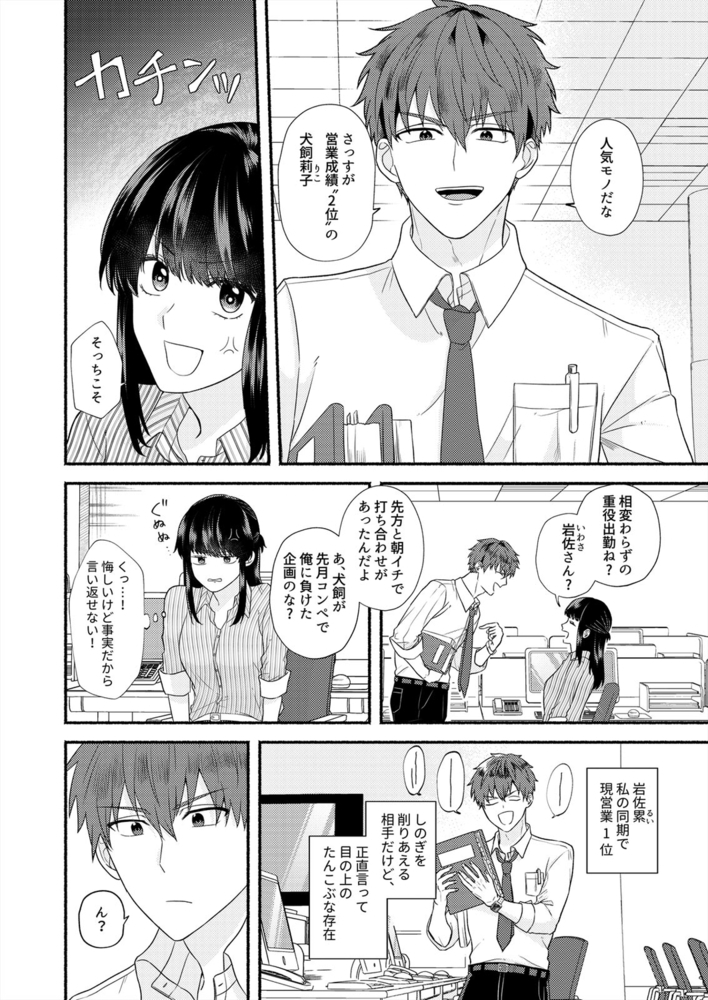 てきぱき仕事をこなし、周りからも頼られる私・犬飼莉子。そんな私の悩みは、同期・岩佐の存在。営業成績も常にトップで仕事もできるのになにかと絡んでくる。そしてもう一…